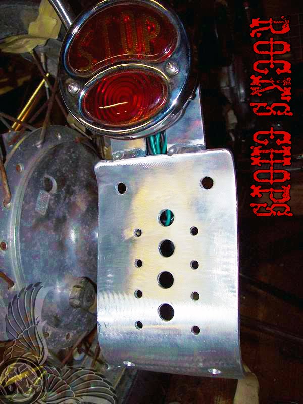 Rock sent a killer one-off side-mount license plate bracket with an old school brake light for our FREEDOM OR DEATH MACHINE. Dig: